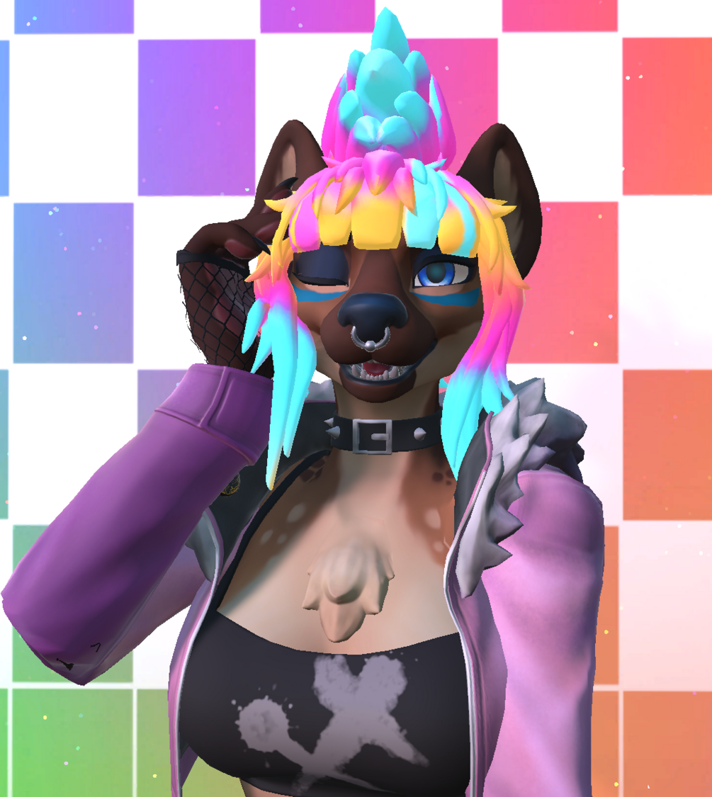 Fun punk hair made to fit the hyenid model by Alber (https://alber.gumroad.com/l/Hyenid)