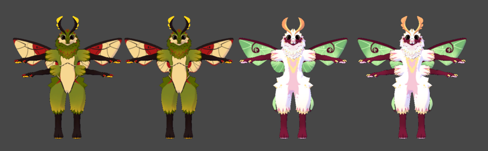 - Bug customization options: No Lights antennae . Thick and thin antennae , Rhino beetle horn, Lunar moth wing addon , Nose shape alteration (has toggle), Second set of arms